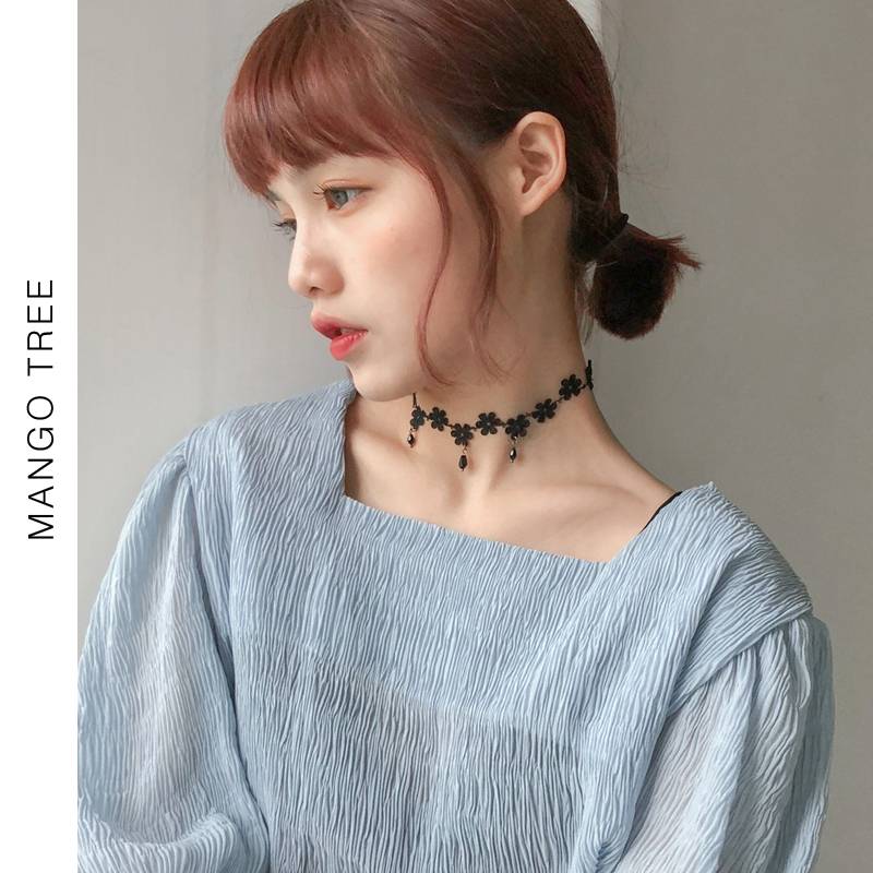 韩国少女钩织花朵choker项链简约个性百搭水晶吊坠颈链锁骨链x235
