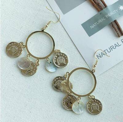 韩国新款耳环女气质个性流苏耳坠夸张长款复古圆圈性感贝壳欧美