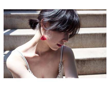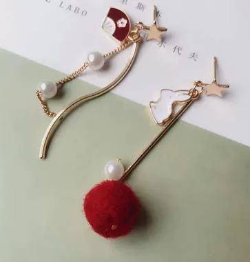 折扇气质轻奢设计师时装原创耳环中国风大红色耳夹扇形生日礼物