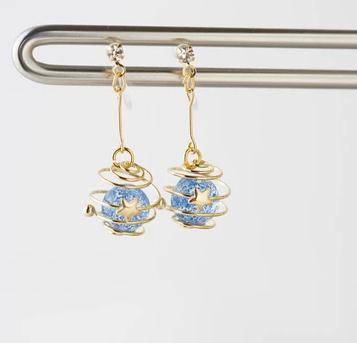 14k镀真金日系绕线弹簧宇宙星球轨迹无耳洞耳夹女耳钉