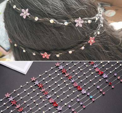 新款 儿童编发链条 女童水钻盘发绳小女孩发饰头饰品公主链额头链