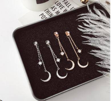 月亮耳夹无耳洞女韩国简约清新学生耳环长款个性气质潮人耳坠耳饰