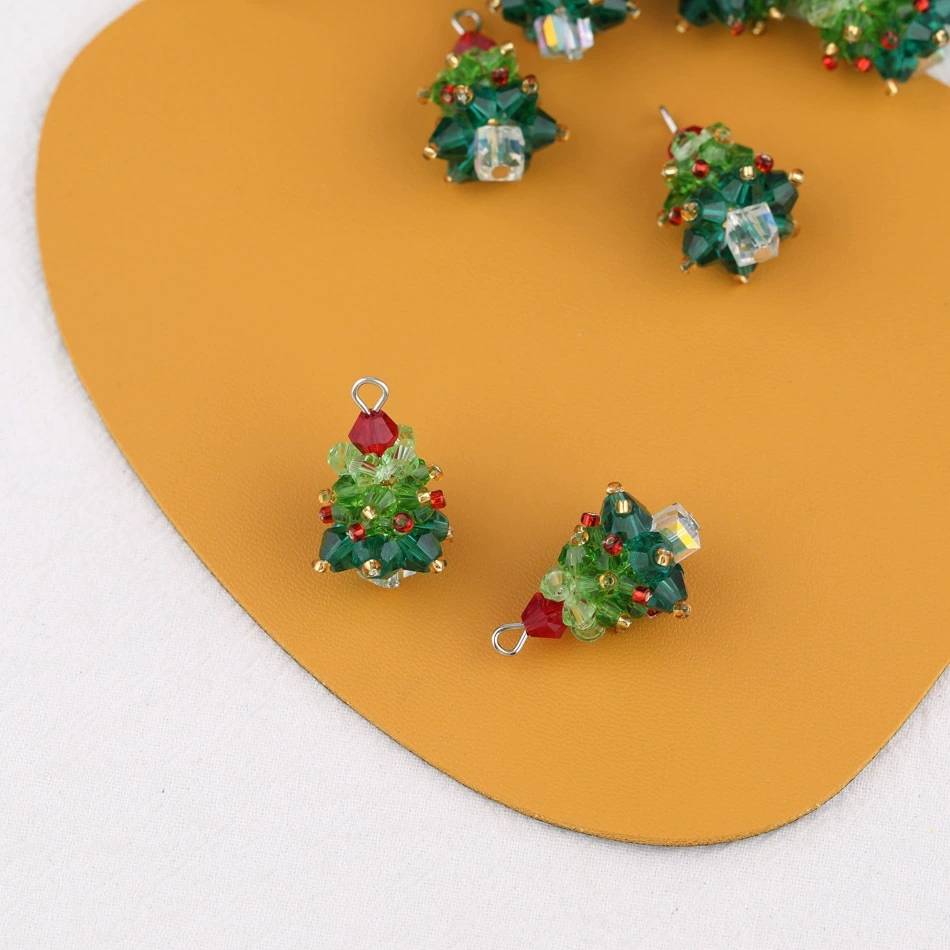 水晶玻璃手工编织圣诞树吊坠 diy自制耳机壳包包挂件饰品材料配件