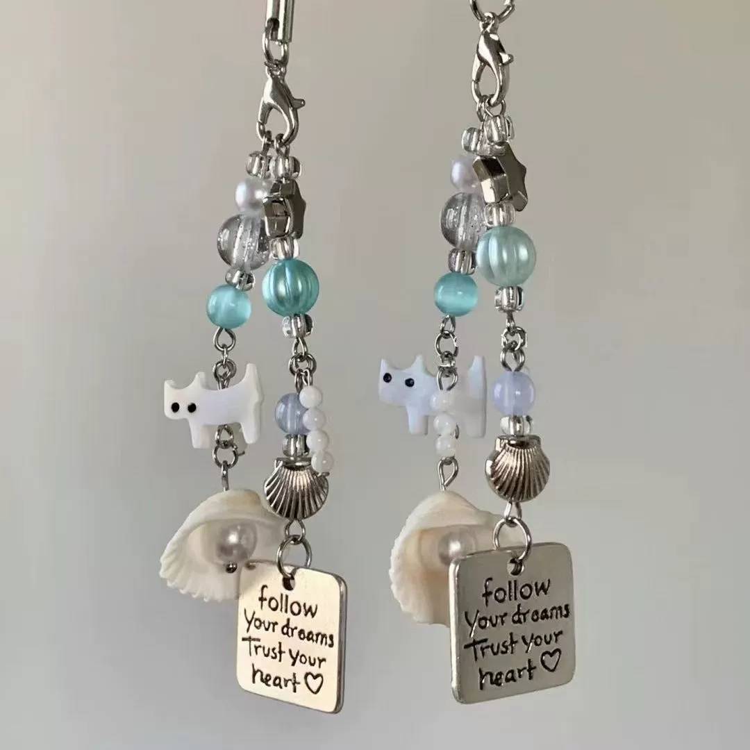 原创设计新款小清新夏日猫咪贝壳挂件手机链钥匙扣随身挂坠新款