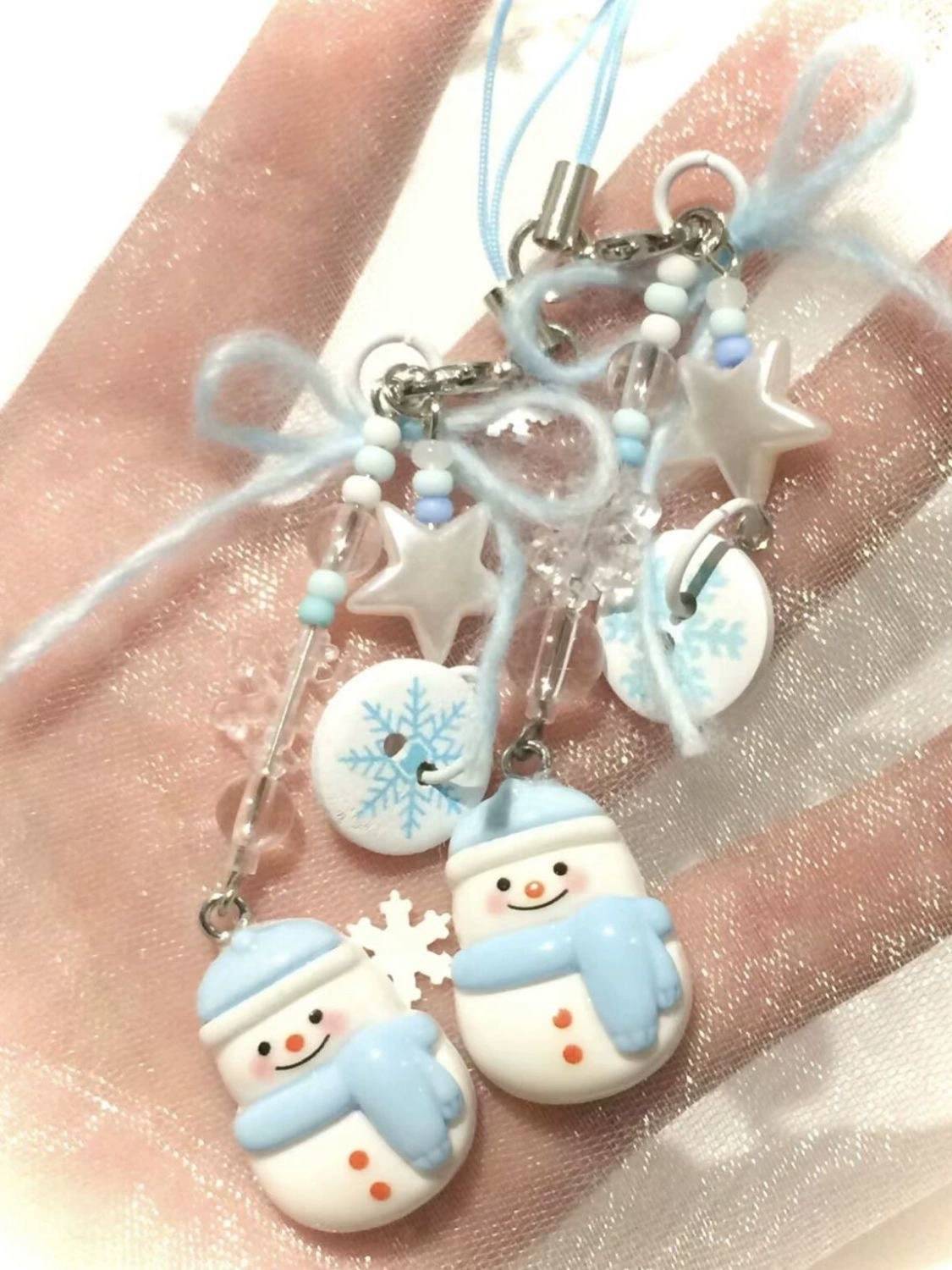 冬日系列 可爱冬日雪花雪人手机链挂件少女心串珠挂饰ins氛围感
