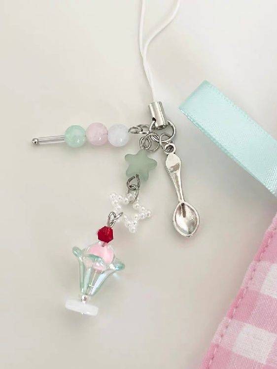 【可爱三色冰淇淋】苏打水手机挂件手工串珠耳机挂饰少女心手机链