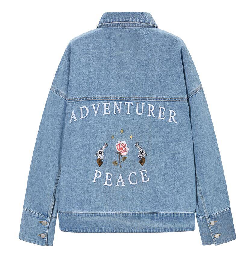 蓝色刺绣牛仔外套女冬宽松秋季2018新款韩版长袖BF风原宿风敦哥潮品
