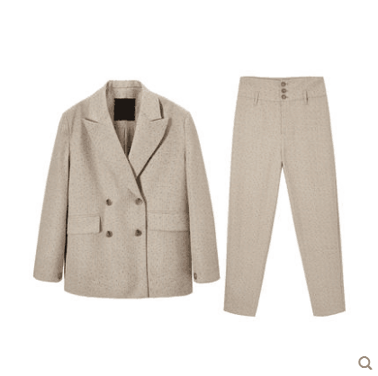 米色波点港味复古chic西装套装女秋季2018新款英伦风外套