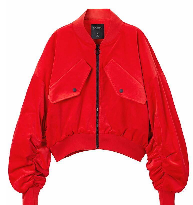 红色外套女短款春装新款宽松蝙蝠袖棒球夹克女纯色棒球服