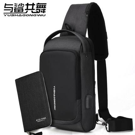 快递包邮2019新款潮流胸包男士斜挎包帆布单肩包胸前包休闲小宝