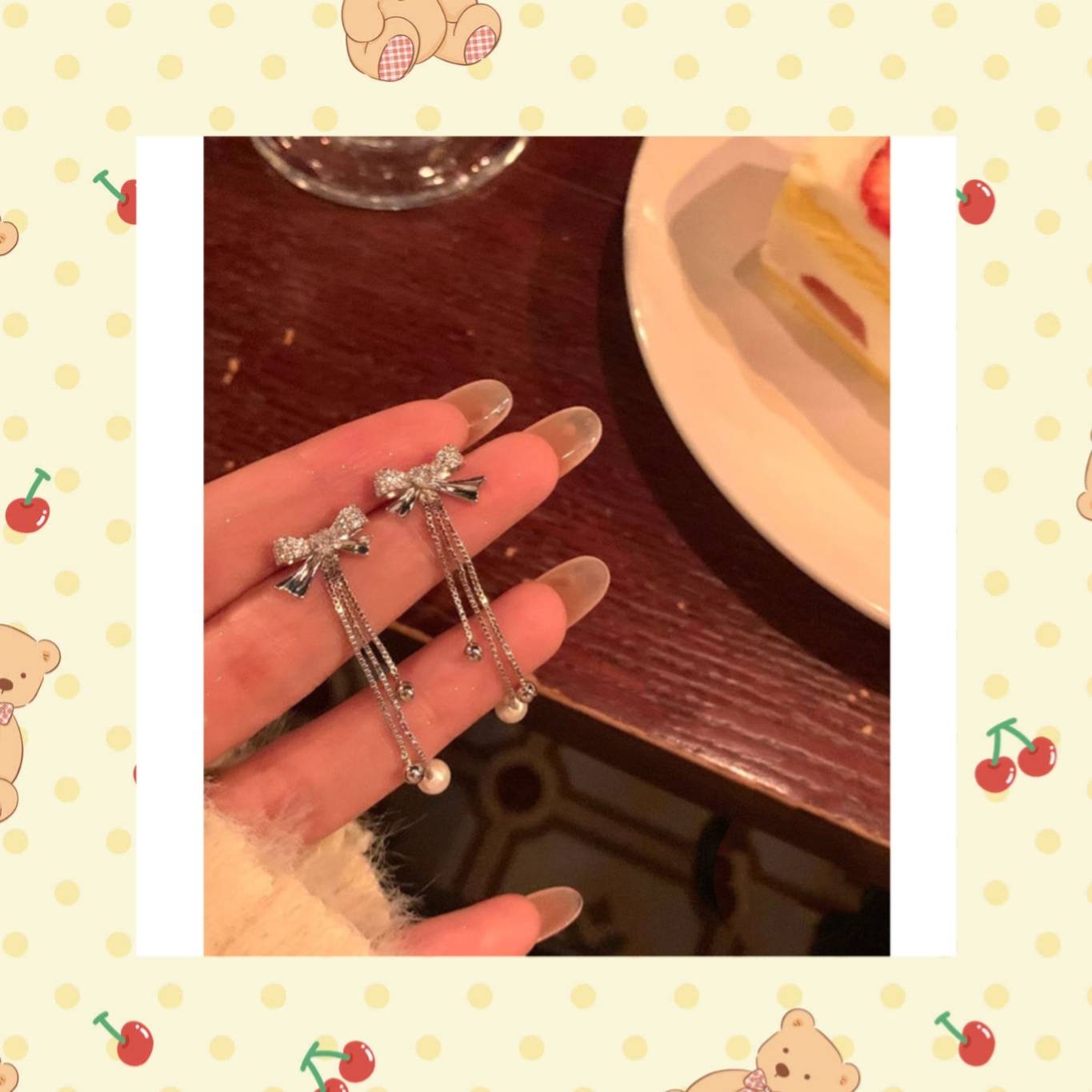 蝴蝶结珍珠流苏耳环女秋冬高级感耳饰新款2024爆款耳环