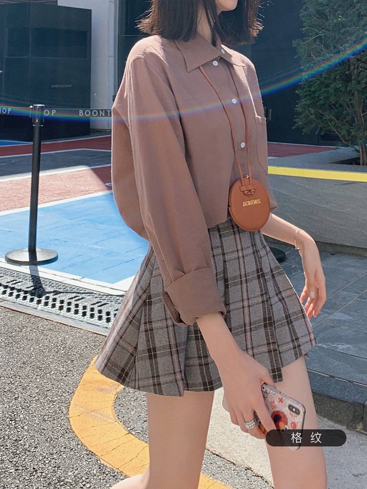 复古格子半身裙女高腰A字裙显瘦短裙小香风黑色百褶裙秋冬