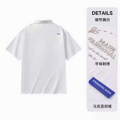 马克华菲夏季弹力短袖衬衫男新款高街休闲时尚廓版字母上衣