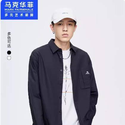 马克华菲纯色简约免烫宽松长袖衬衫男秋新款休闲时尚衬衫