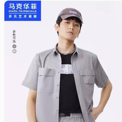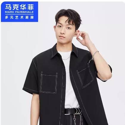 马克华菲撞色明线短袖衬衫男2023夏季新款宽松都市暖男时尚上衣