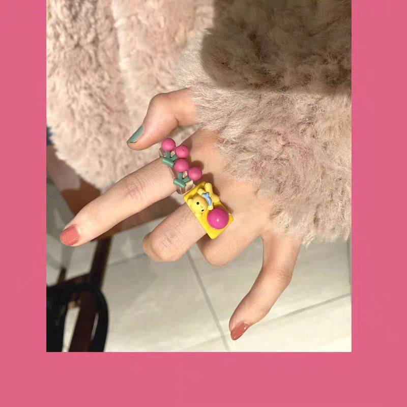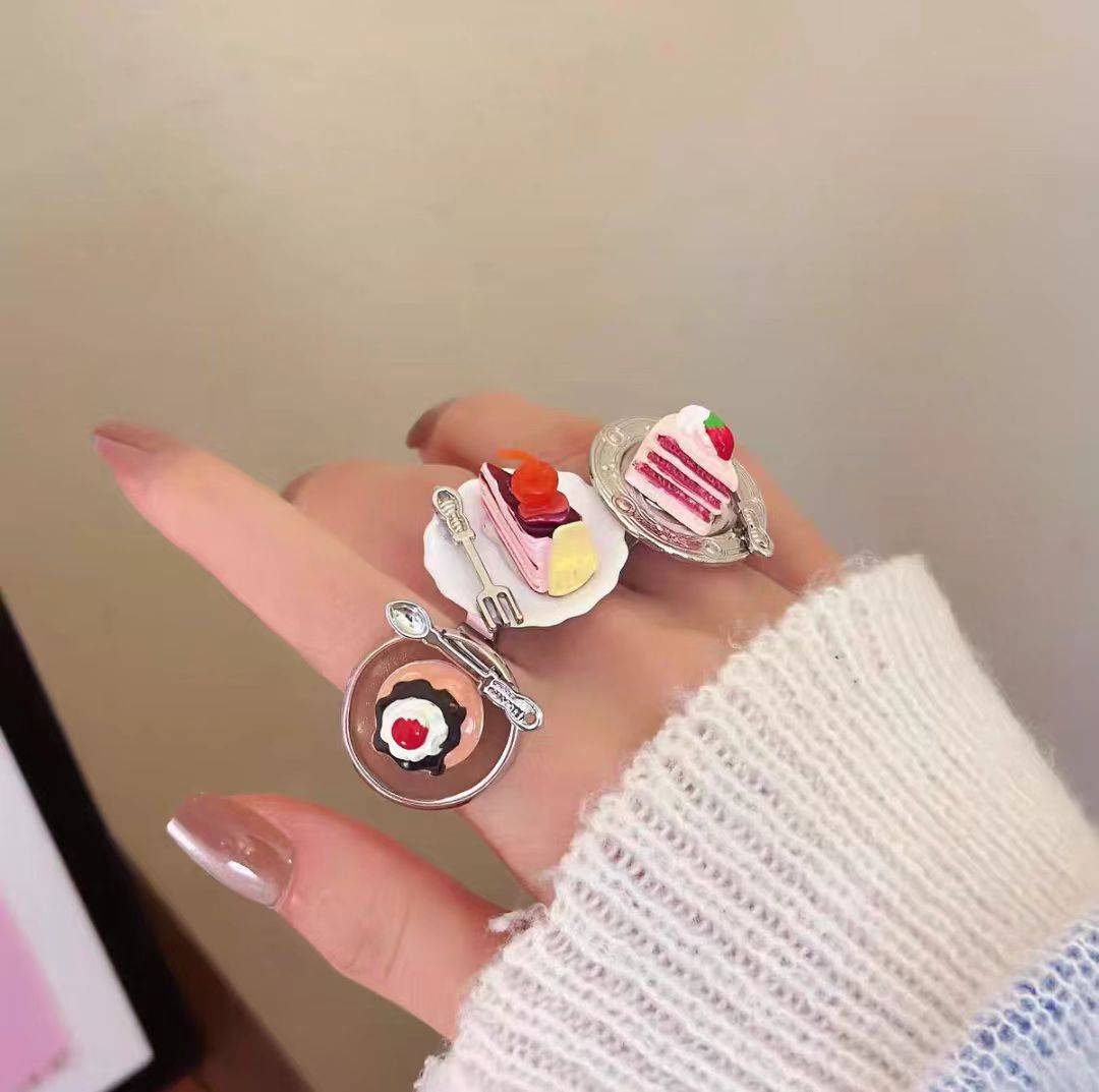 卡通甜美蛋糕戒指可爱小众设计樱桃巧克力水果蛋糕下午茶指环