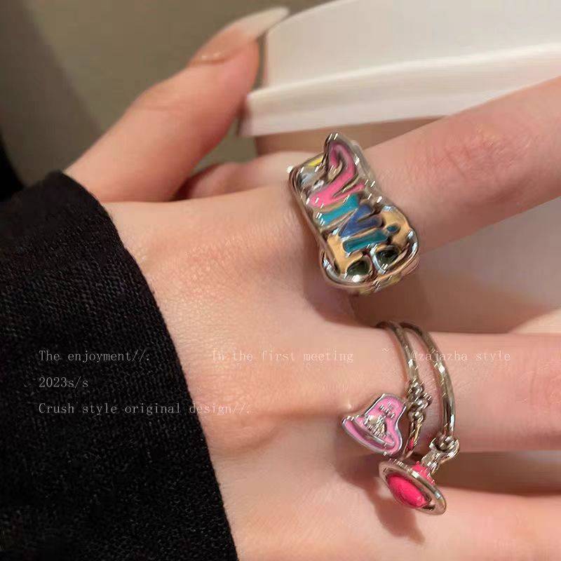 彩色字母爱心西太后戒指女款轻奢小众精致开口戒指