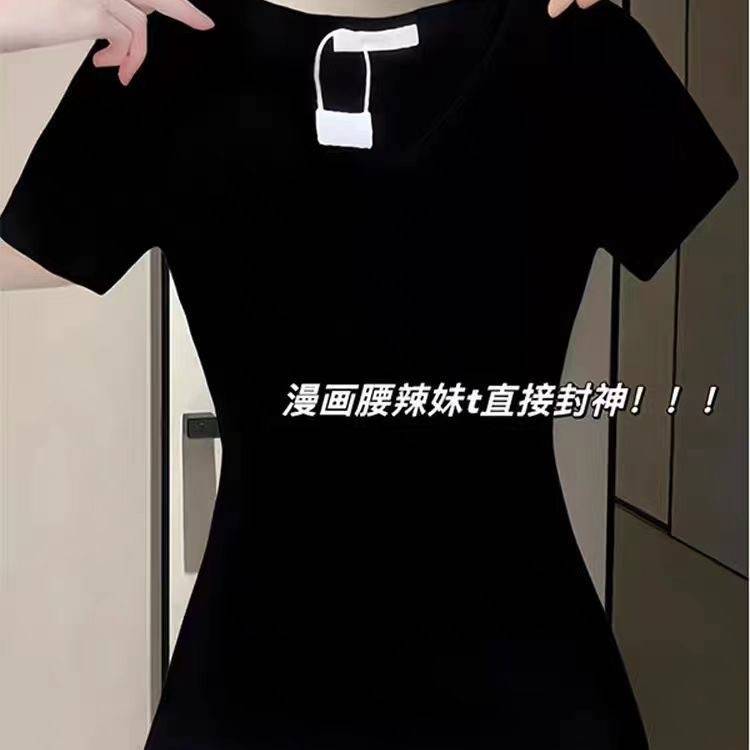 纯棉白色v领正肩短袖t恤女夏季2024新款韩版基础修身显瘦内搭上衣