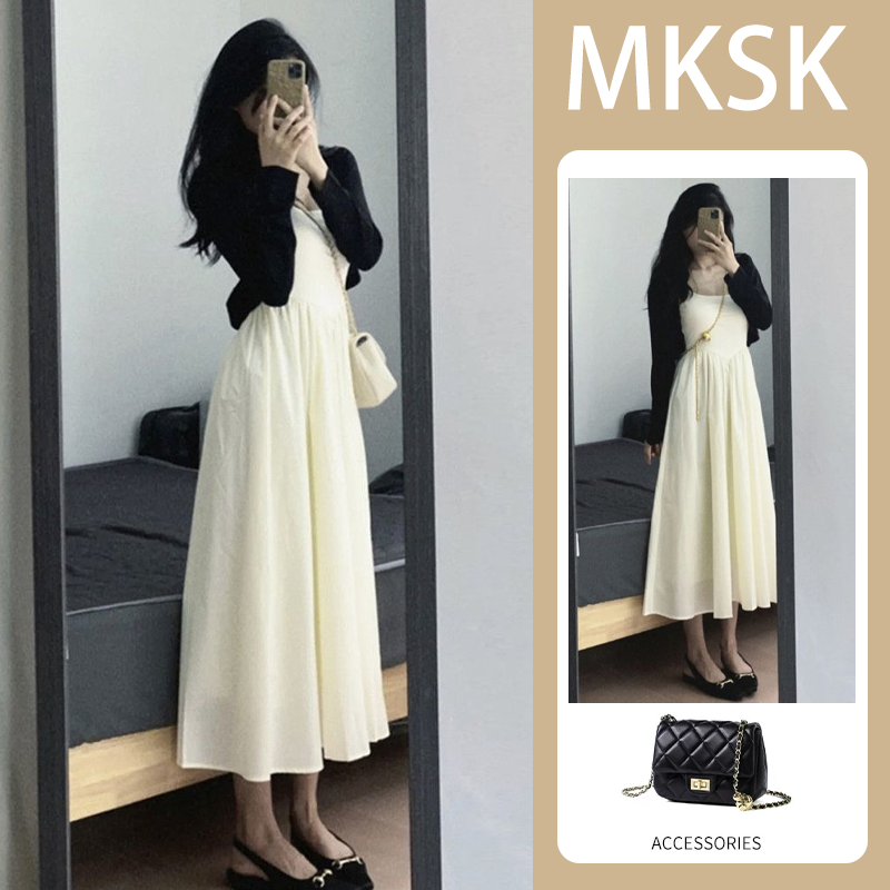 海边度假小众吊带收腰连衣裙子套装2024早秋冬款半身裙长款垂坠感