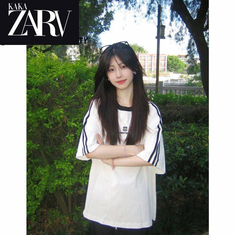 美式vibe国潮正肩短袖女夏季2023年新款纯棉t恤设计感小众上衣ins