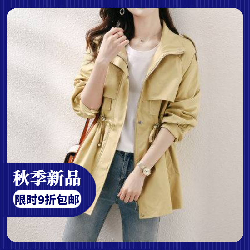 今年流行春季2021年新款收腰显瘦连帽风衣女中长款小个子工装外套