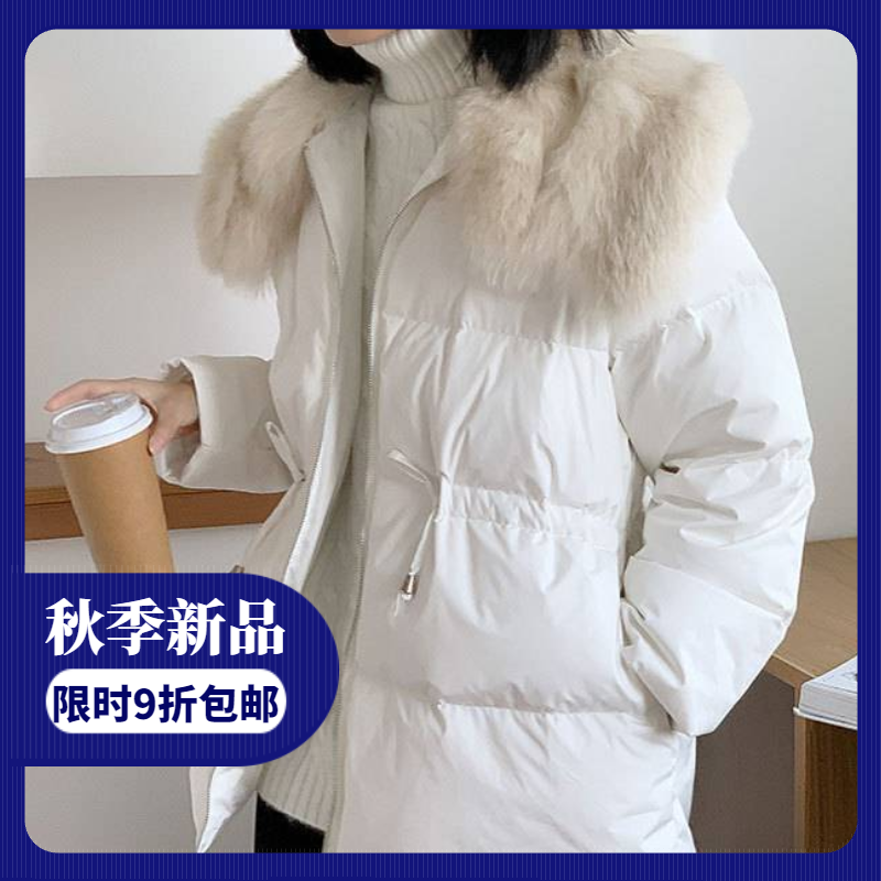 YFL羽绒外套2020冬新款连帽长款加厚毛领小个子羽绒服女