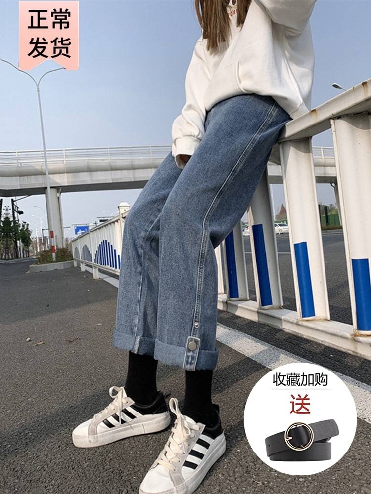 直筒牛仔裤女高腰宽松春款女装2021年新款chic显瘦阔腿港味裤子潮