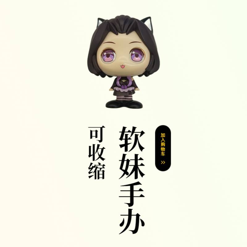 卡哇伊正版手办大眼短发兽耳紫眸可收缩手感绝佳便携易带走