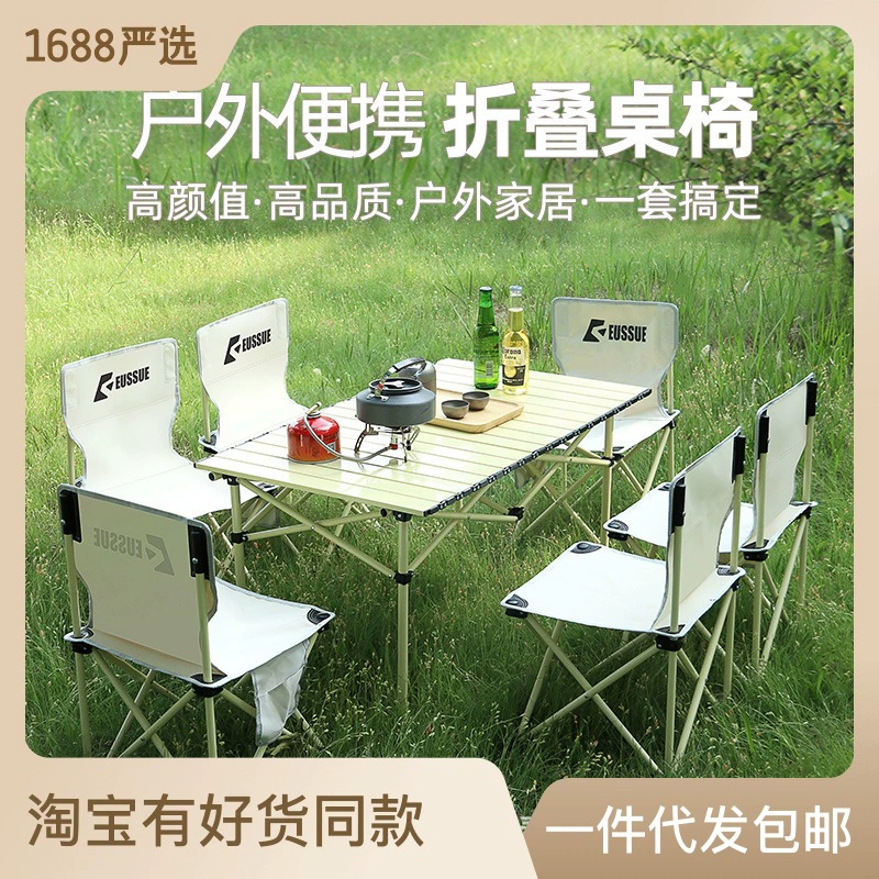 户外折叠桌椅套装野餐露营桌子铝合金蛋卷桌 折叠桌折叠椅月亮椅