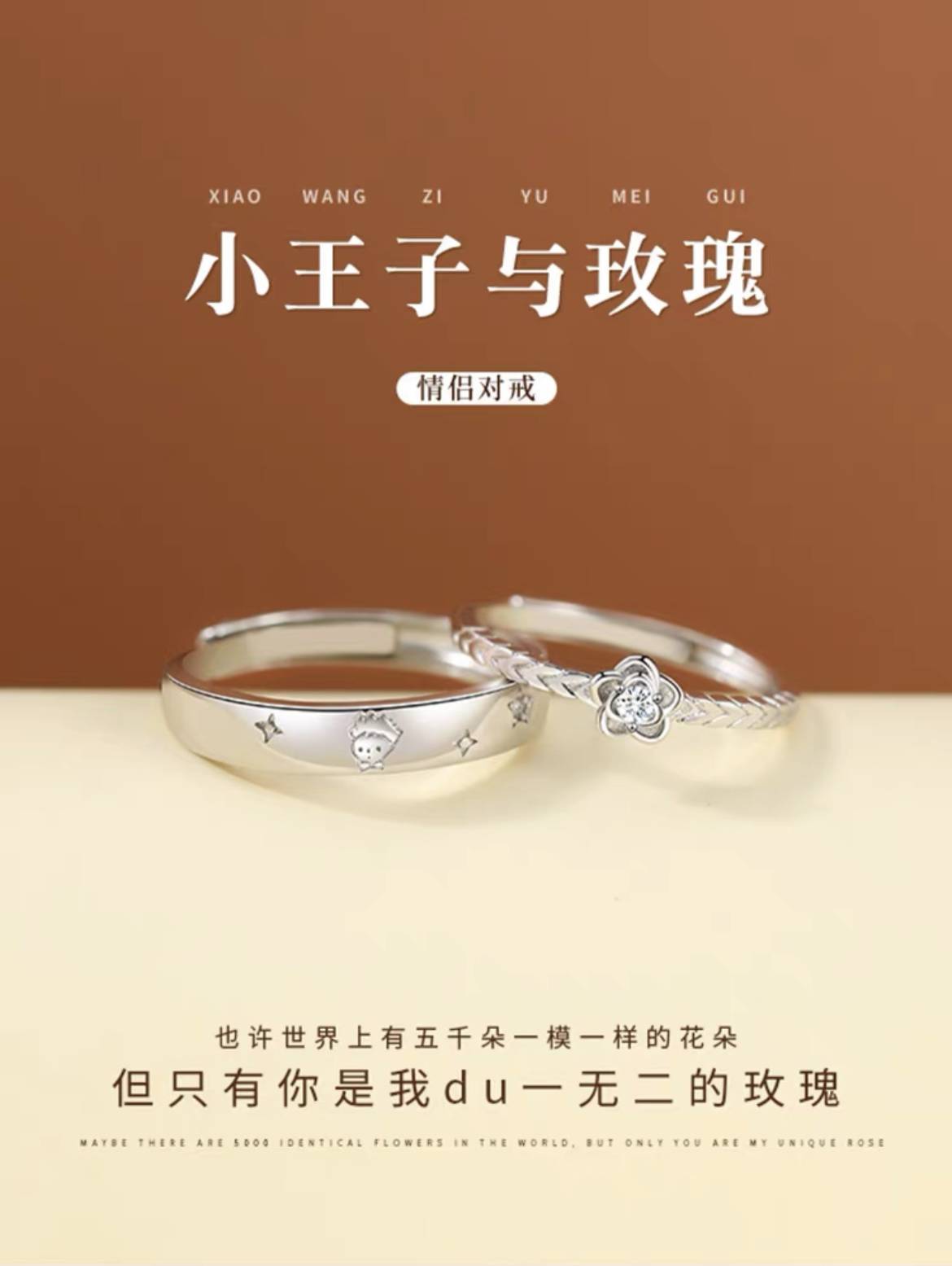 小王子和玫瑰情侣戒指一对款足银对戒小众设计刻字