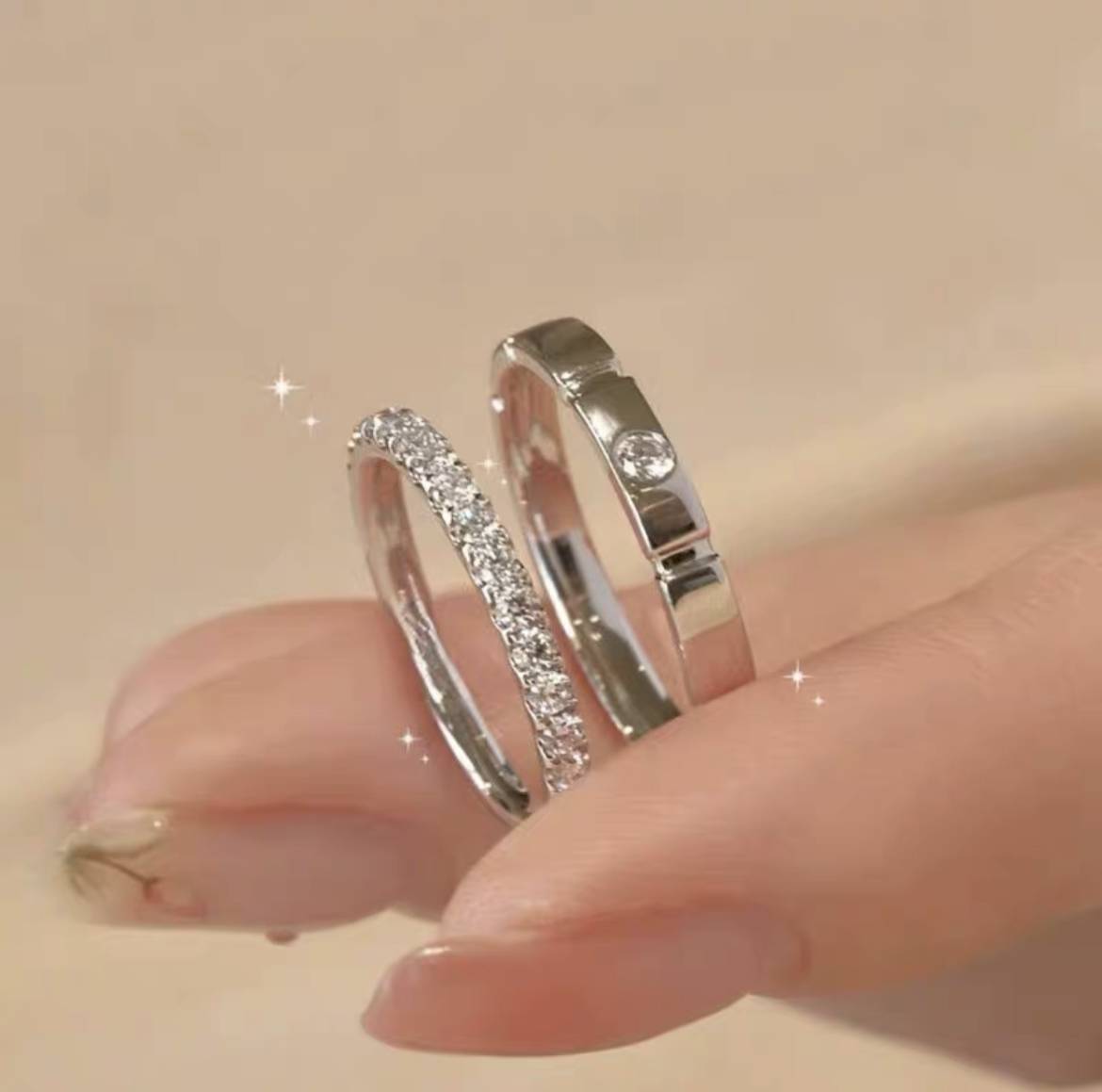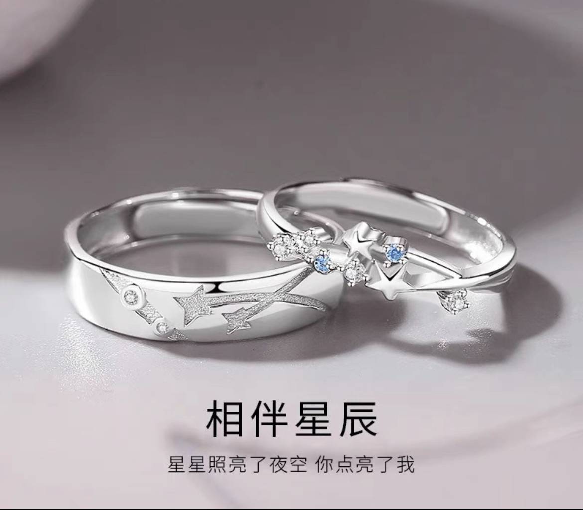 相伴星辰情侣戒指纯银一对可调节款对戒小众设计刻字