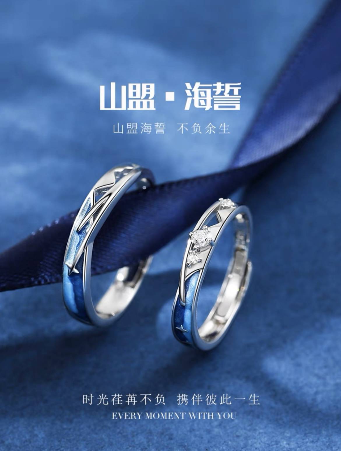 山盟海誓情侣对戒一对男女款定制刻字纯银戒指