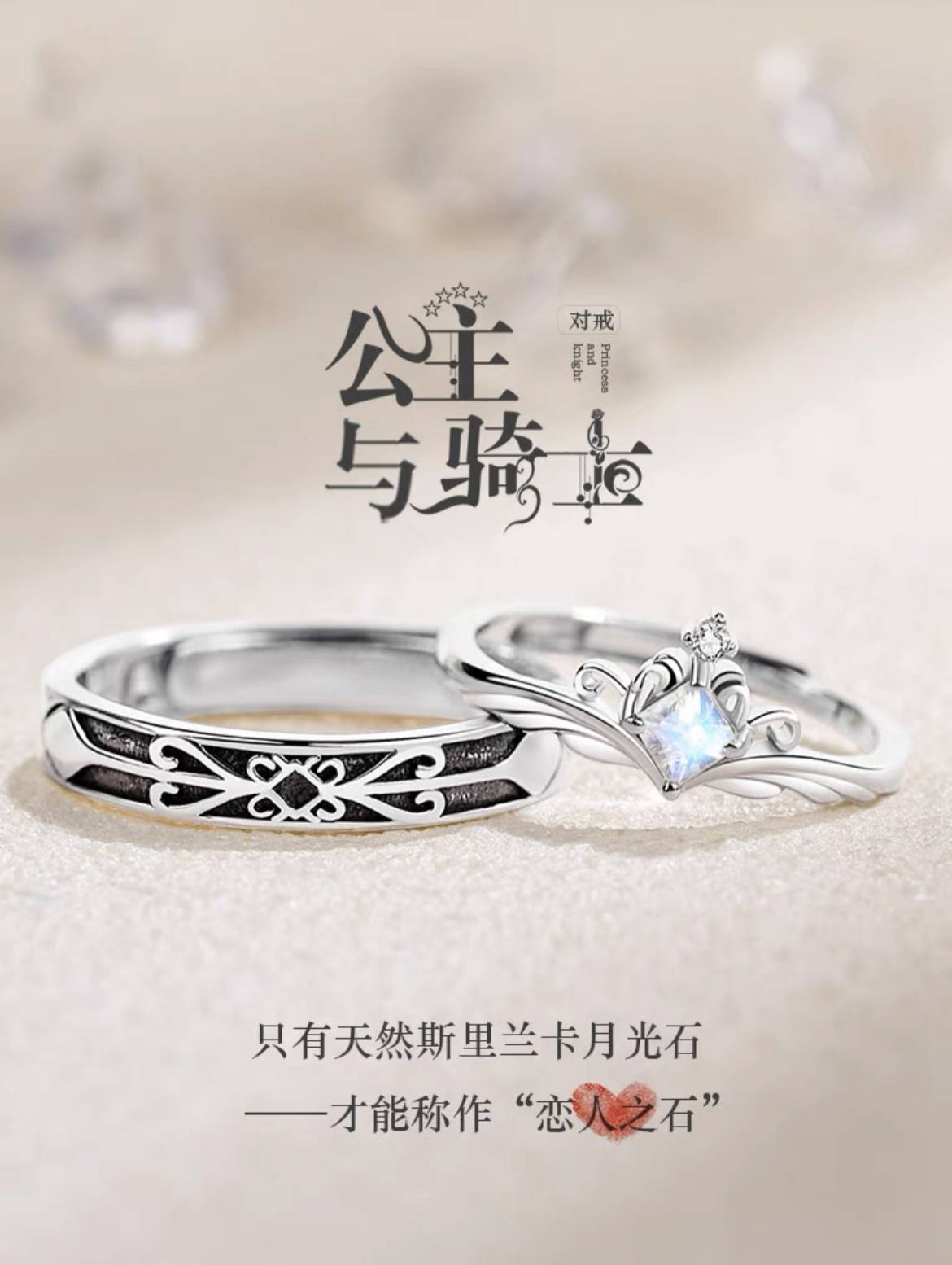 公主与骑士情侣对戒一对轻奢小众设计纯银戒指复古