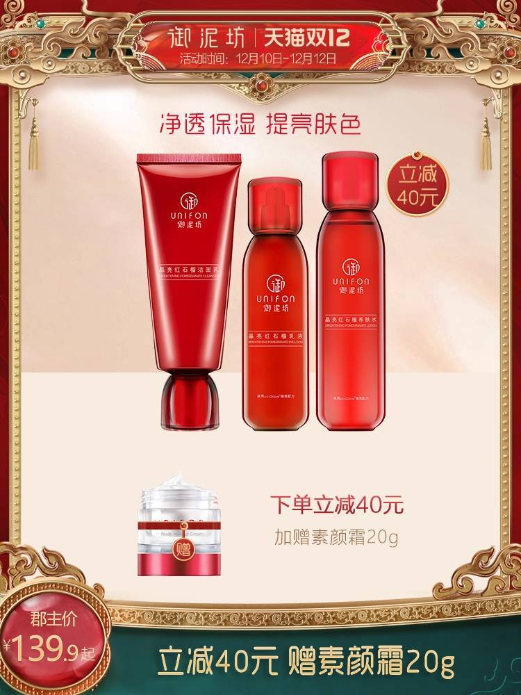 御泥坊红石榴护肤品套装补水保湿提亮肤色改善黯哑水乳化妆品正品