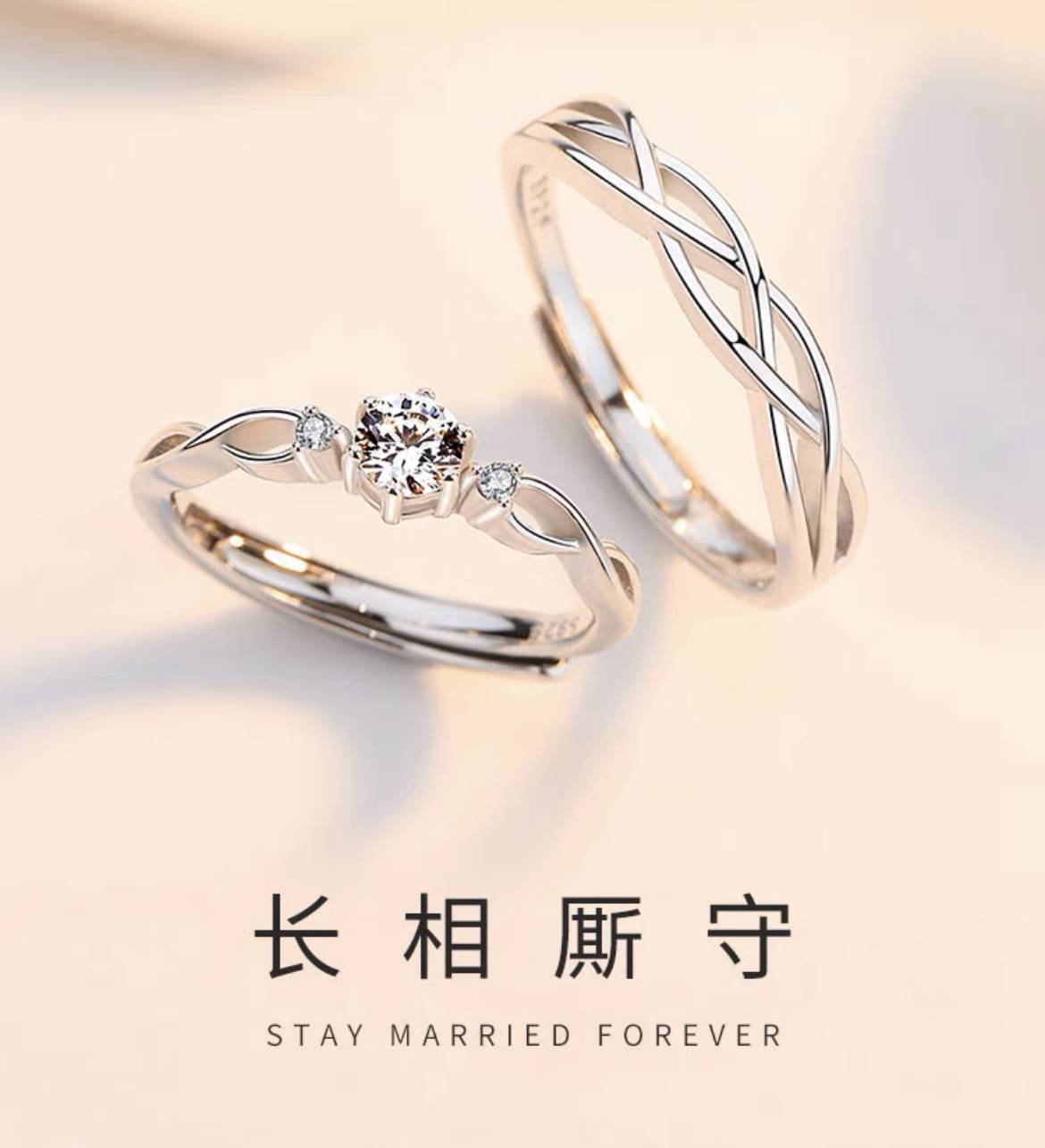 情侣戒指一对白金色钻石满天星对戒开口刻字