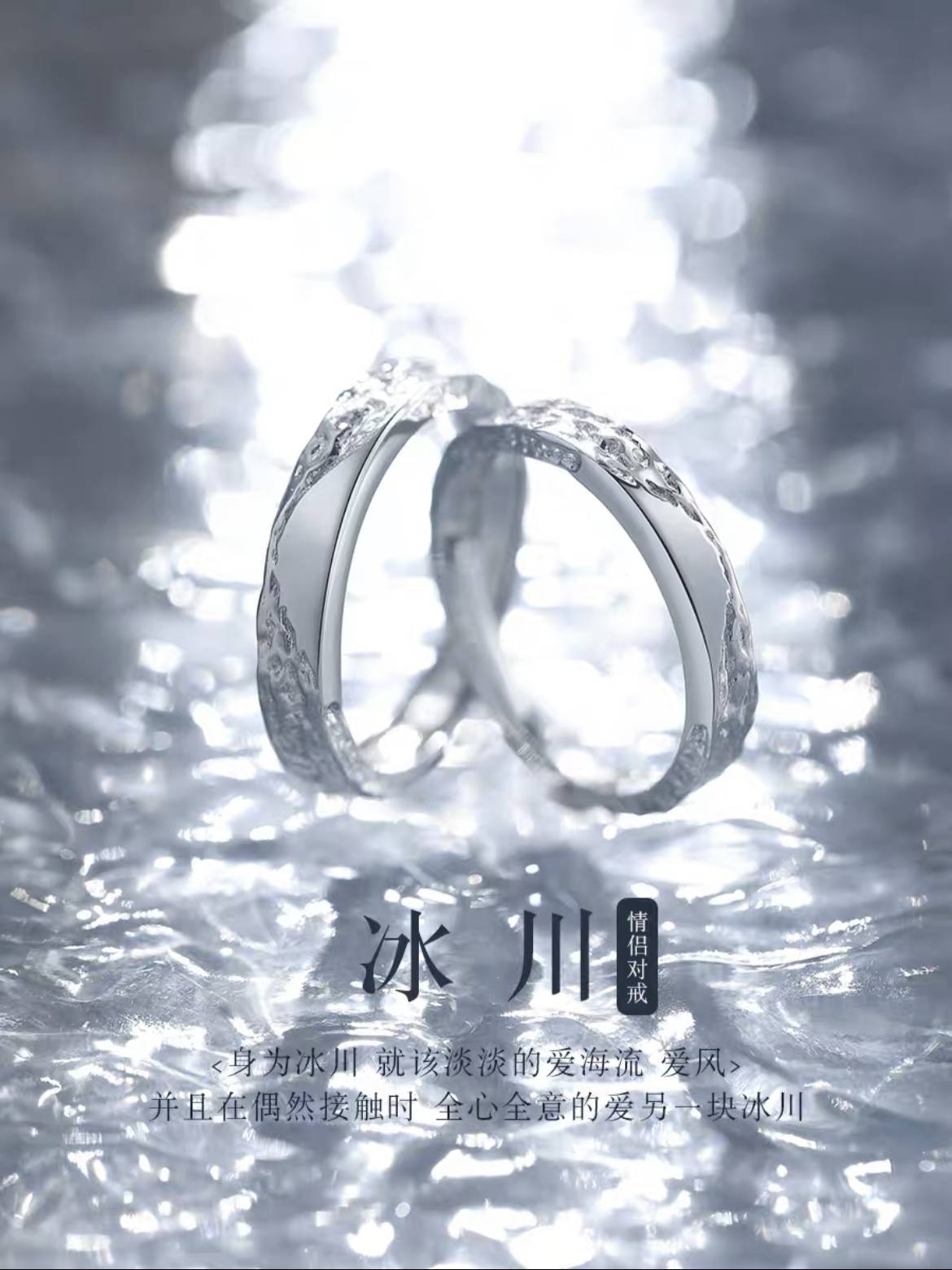 冰川999足银情侣戒指女男一对款小众设计对戒
