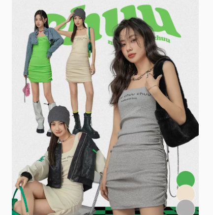 CHUU性感修身背心裙连衣裙女士2022秋季新款褶皱显瘦短裙子潮