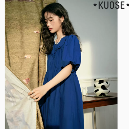 阔色法式蓝色小个子衬衫连衣裙女2022夏季设计感小众中长裙子