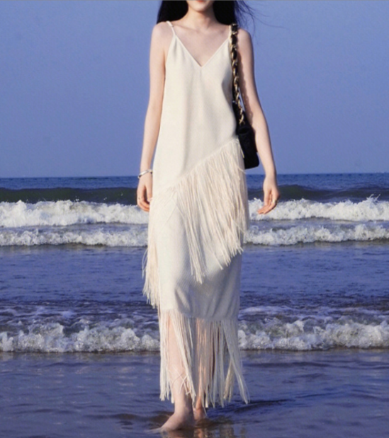 拍照超仙沙滩裙女夏季三亚海边度假连衣裙感吊带长裙旅行穿搭