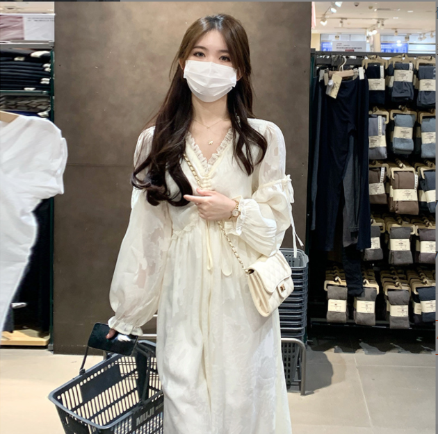 宫廷风连衣裙秋季冬2023年新款法式气质收腰仙女裙子内搭A字长裙