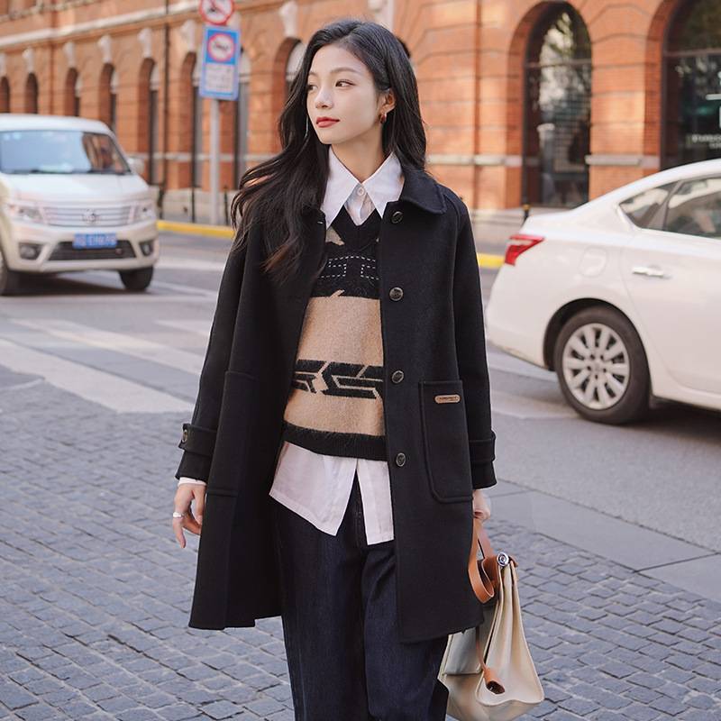双面羊绒大衣女批发中长款2023新款春季羊毛直筒时尚高端毛呢外套