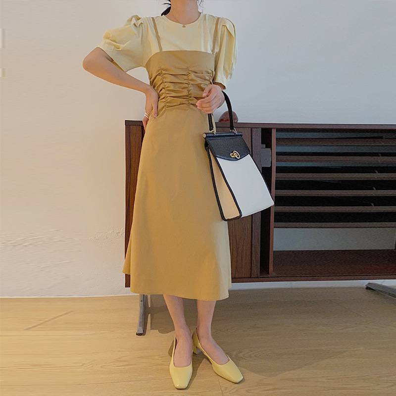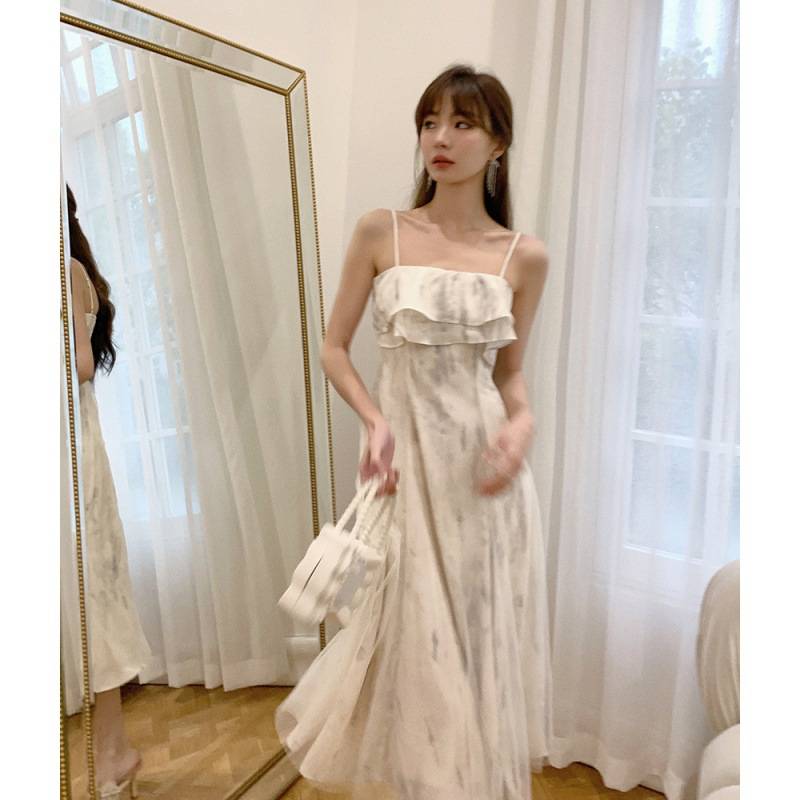 2023春夏新款法式连衣裙女温柔甜美网纱吊带裙+罩衫套装