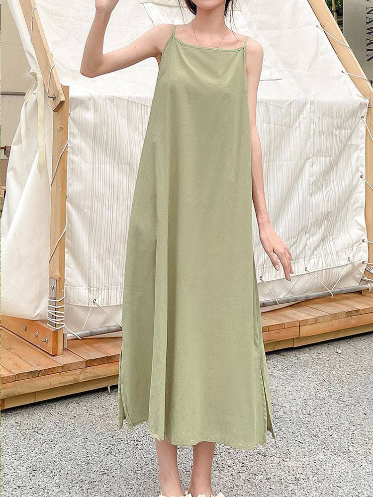 2023年新款韩版吊带裙纯棉夏季女装度假风无袖系带露背长款连衣裙