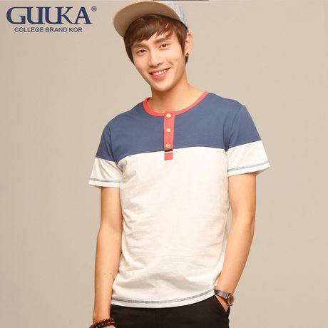 韩版修身牛仔上装纯棉短袖T恤男潮流半袖