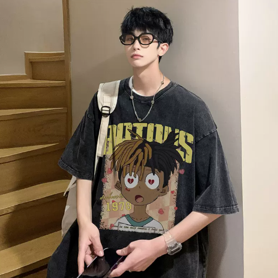 美式重磅短袖T恤男士夏季复古水洗做旧高街半袖男装衣服潮牌潮流