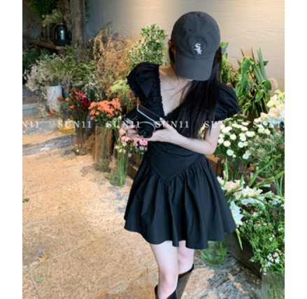 蓬蓬小黑裙/小心机减龄小众设计感背带黑色蓬蓬显瘦连衣裙