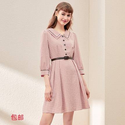2020夏季新款品牌女装v领纯色拼接a字裙淑女显瘦雪纺连衣裙