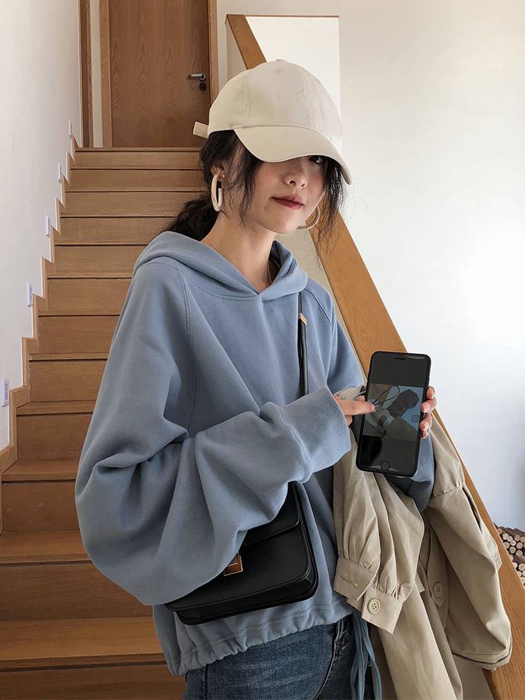 HAZY原创设计 抽绳连帽套头卫衣女秋季2018新款宽松显瘦学生