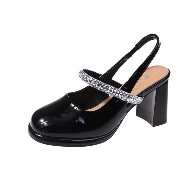 高跟凉鞋女夏季2020新款欧美时尚珍珠碎花带时装单鞋粗跟浅口女鞋