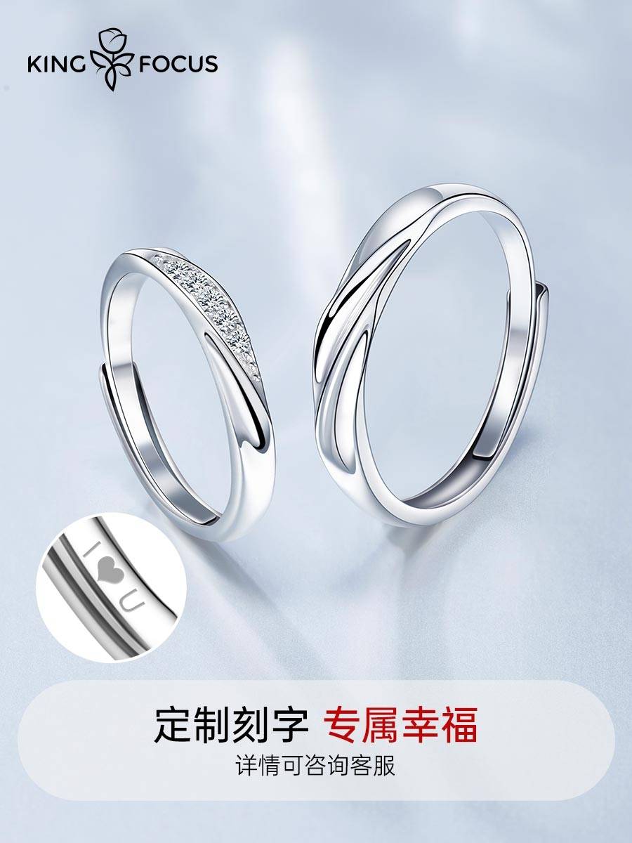 S925银 520结婚情侣对戒 韩版男女开口戒指 七夕纪念日礼物